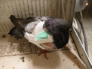 When it became clear that this vet would not treat the pigeon as part of her practice’s wildlife rehabilitation program and we asked to have the bird back so we he could live with us, we hit a wall of dogma so thick, we were seeing stars. In conversations with the doctor, her vet tech, and later, the emergency on-call “expert” at another wildlife rehabilitation facility called WildCare, when we explained that we planned to provide the injured bird a permanent place in our home if he could never fly again, we were treated like naïve, ill-informed and even selfish individuals for suggesting that the pigeon wouldn’t, in fact, be better off dead.   “Of course it is admirable that you don’t want the pigeon to die,” said one of them, “But you can’t let your needs cloud your judgment. You need to consider what the bird would want. You need to consider what is in the bird’s best interest, not yours.” Again, we were stunned. After offering to pay to have the wing repaired, after explaining to them that we would be willing to provide the bird with a lifetime of care in our own home, at our own expense, and at to the very best of our ability, we were befuddled as to how we were being “selfish” or self-centered. Weren’t these actions the very definition of altruism?