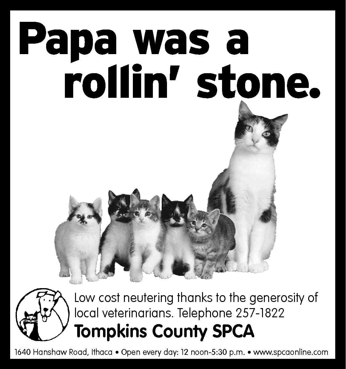 Rather than accuse people of being irresponsible, rather than rant about “pet overpopulation” and the “need” to kill, all of it of dubious value and truth, and rather than seek mandatory spay/neuter laws which empower animal control to impound and kill more animals, this piece summarized the shelter’s desire in five humorous words. Though not a political cartoon, per se, the Tompkins County ad of my tenure was as biting and dramatic as one (copy of the original from the San Francisco SPCA). Tompkins County became the first No Kill community in U.S. history on the back of strong community support, something “pet overpopulation” “mandatory spay/neuter” and “irresponsible” ranters have never, ever been able to achieve.