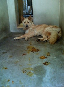 Or like this dying puppy left in a cold, barren cage, with no blanket so he is covered in his own urine: