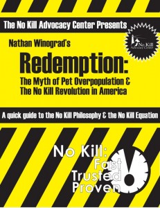 The No Kill Advocacy Center has released a “cliff notes”-like version of Redemption: The Myth of Pet Overpopulation & The No Kill Revolution in America. It is a No Kill primer for those who want a refresher or have not read the book. It covers the No Kill philosophy, the No Kill Equation, the myth of pet overpopulation, and more in just a few pages. It also addresses public health/safety and cost issues, and the myth that open admission shelters cannot be No Kill. And it shows that No Kill is a humane, effective, sustainable, cost-effective model that works hand in hand with public health and safety, while fulfilling a fiscal responsibility to taxpayers.